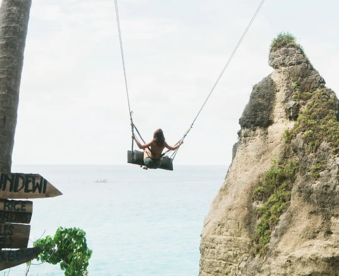 The swings in Nusa Penida offer a thrilling and picturesque experience, allowing you to soar above the azure waters and lush landscapes of this tropical paradise. Hanging high above the cliffs, these swings provide an exhilarating sensation as you swing out over the dramatic cliffs, offering breathtaking panoramic views of the Indian Ocean and the rugged coastline.